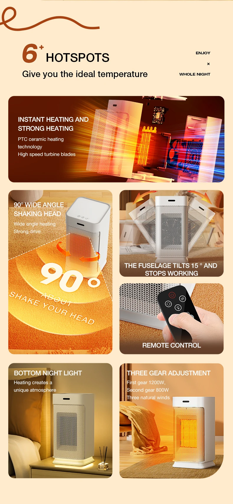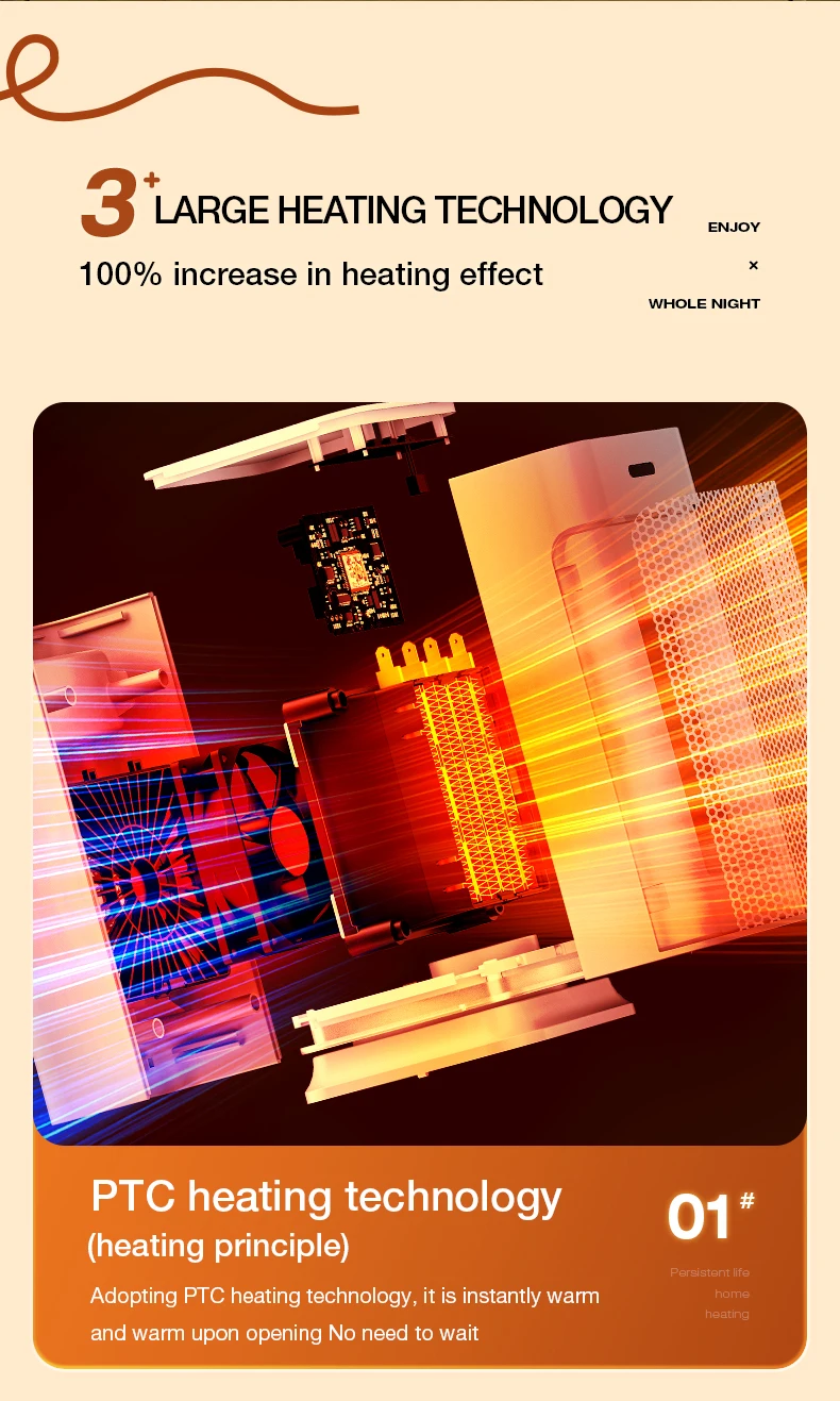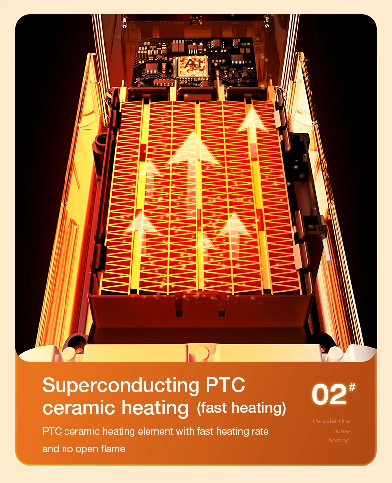 Fast & Efficient Heating: Equipped with advanced PTC ceramic heating for instant warmth without open flames.