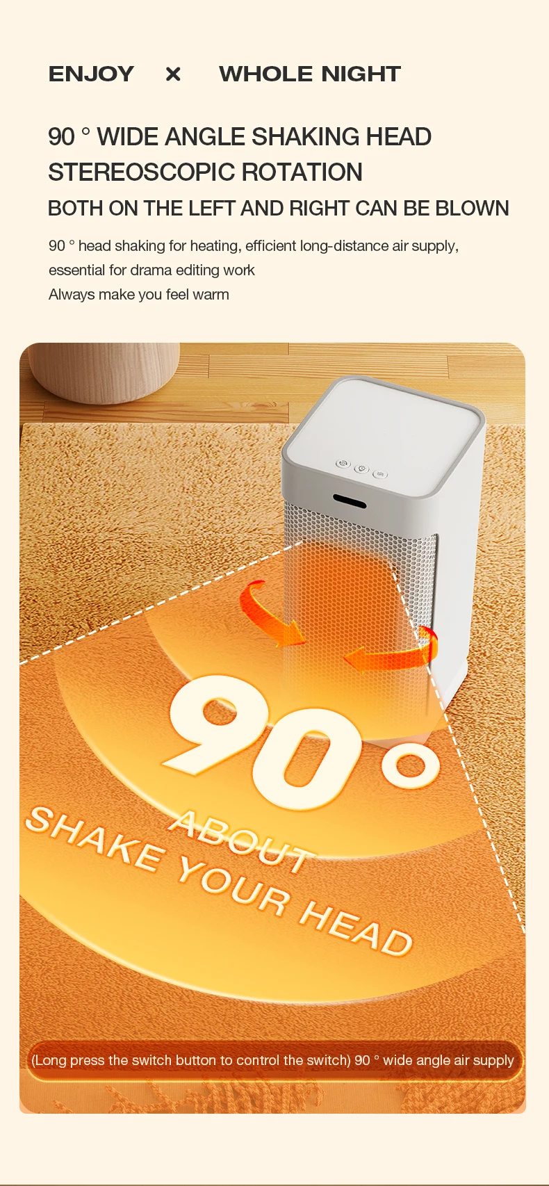 Wide-Angle Oscillation: 90° side-to-side rotation ensures even heat distribution across 20m² rooms.